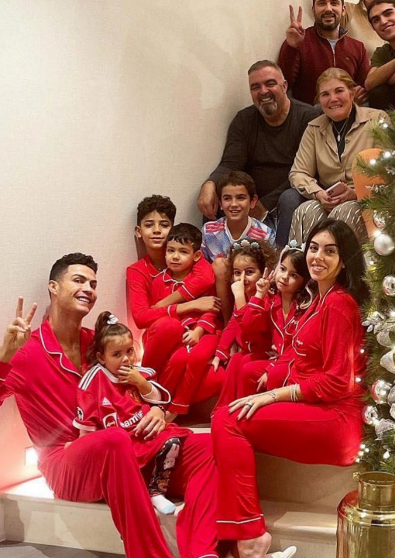 Ronaldo, Georgina & Family In Red Jersey Pyjamas
