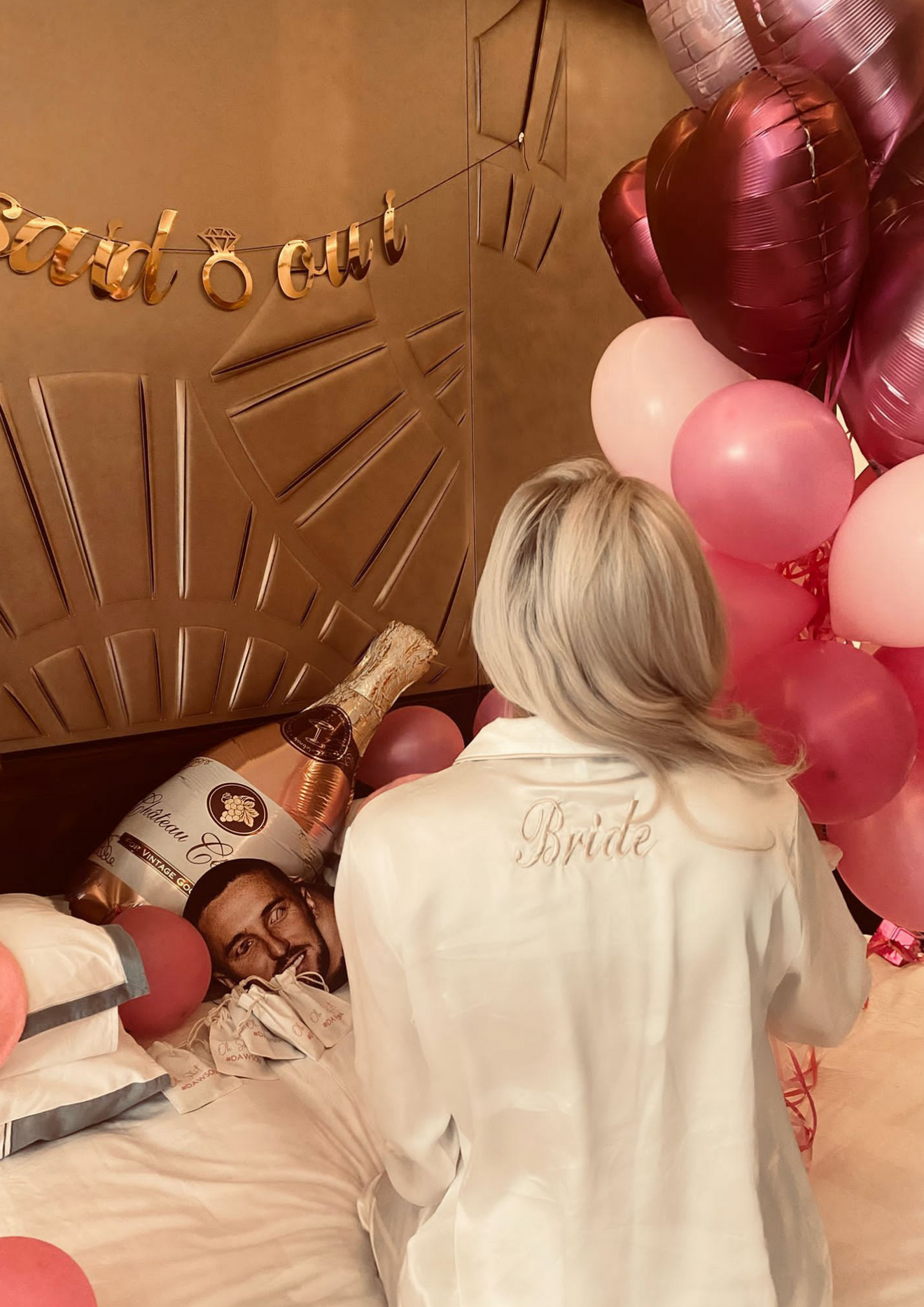 Hannah Dawson In The Long Satin Bridal Pyjamas